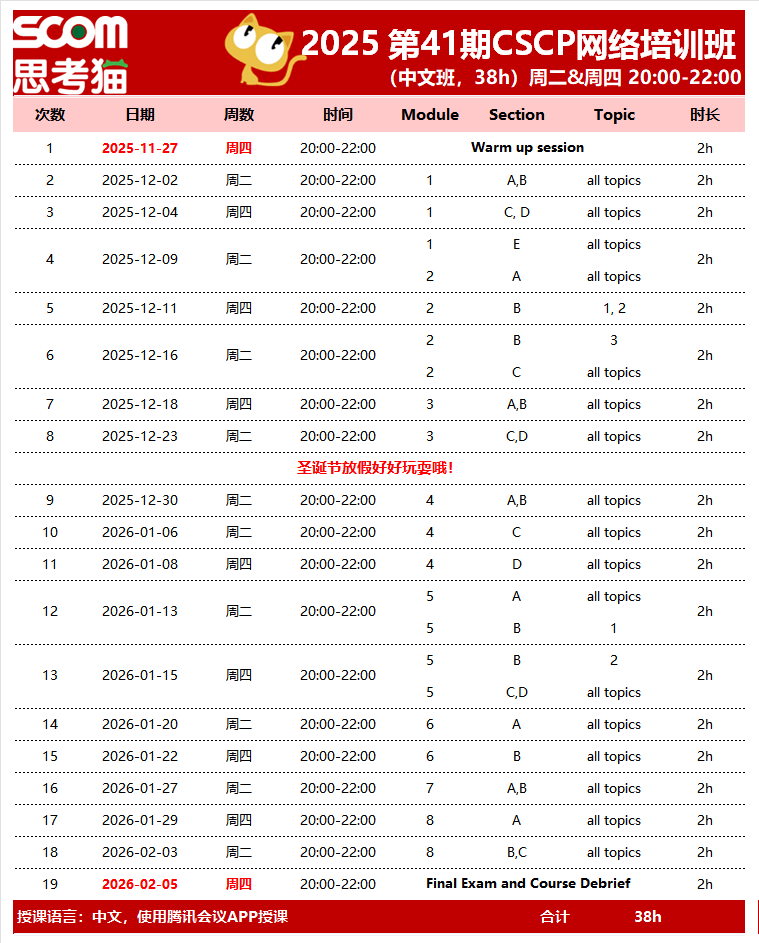( 思考猫 SCOM 独家定制 ,2025 最新发布,时长 10 小时,系统梳理 CSCP 知识点,讲解考试技巧和思路,助力考试通关)